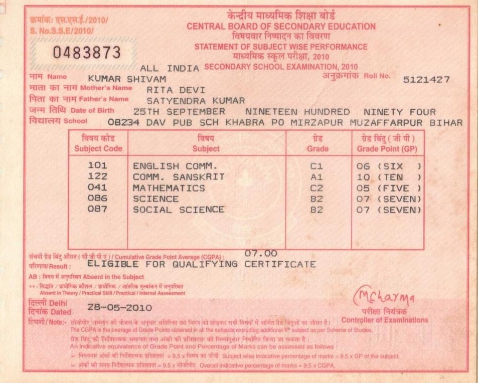 | Exam | Full Marks | Pass Marks | Marks Obtained |