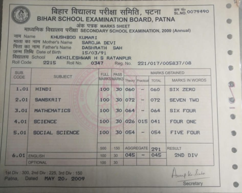 | Exam | Full Marks | Pass Marks | Marks Obtained |