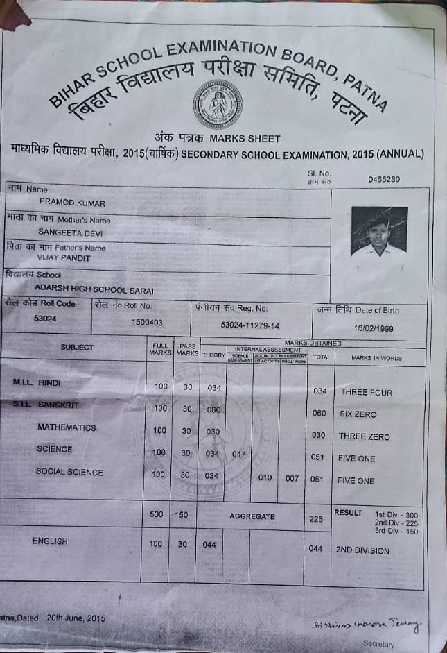 | Exam | Full Marks | Pass Marks | Marks Obtained |