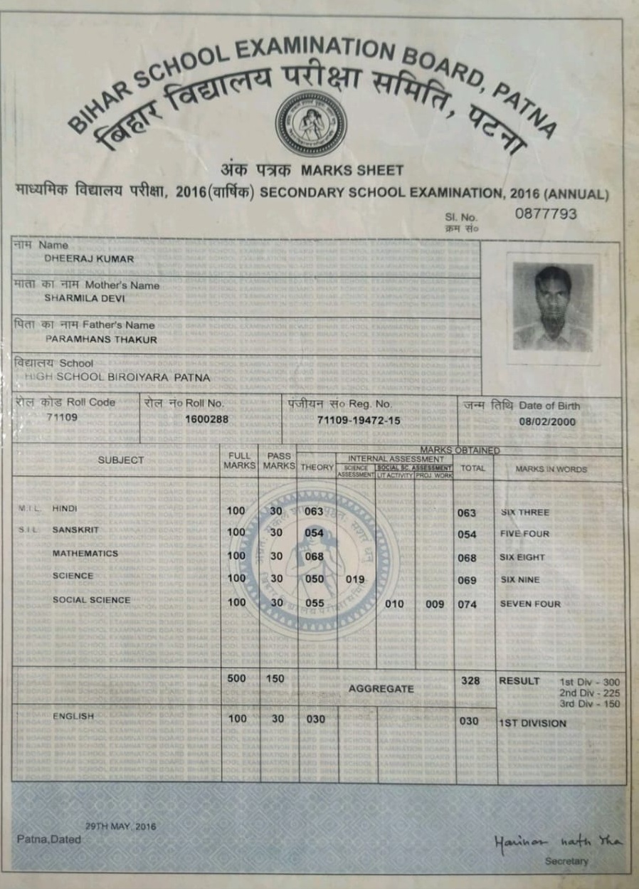 | Exam | Full Marks | Pass Marks | Marks Obtained |