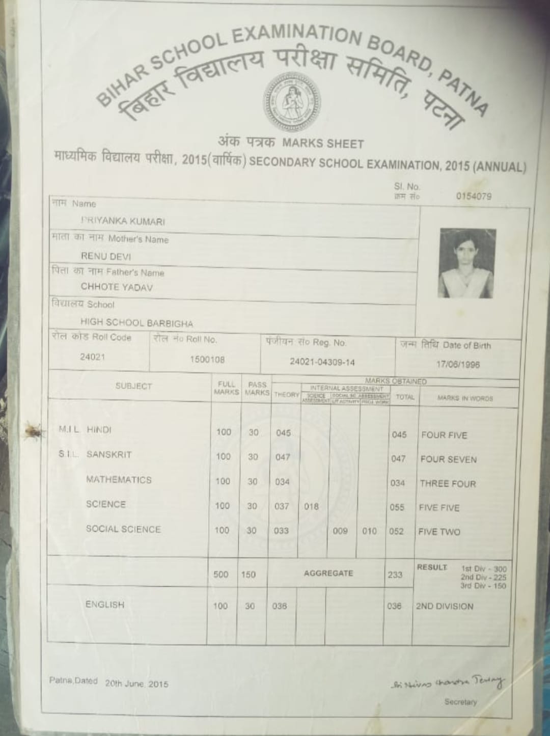 | Exam | Full Marks | Pass Marks | Marks Obtained |