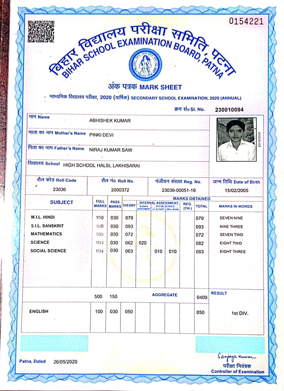 | Exam | Full Marks | Pass Marks | Marks Obtained |