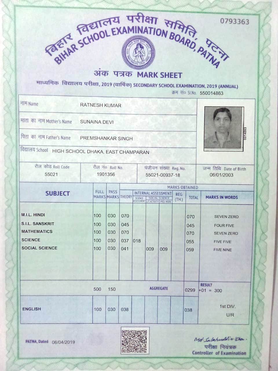 | Exam | Full Marks | Pass Marks | Marks Obtained |
