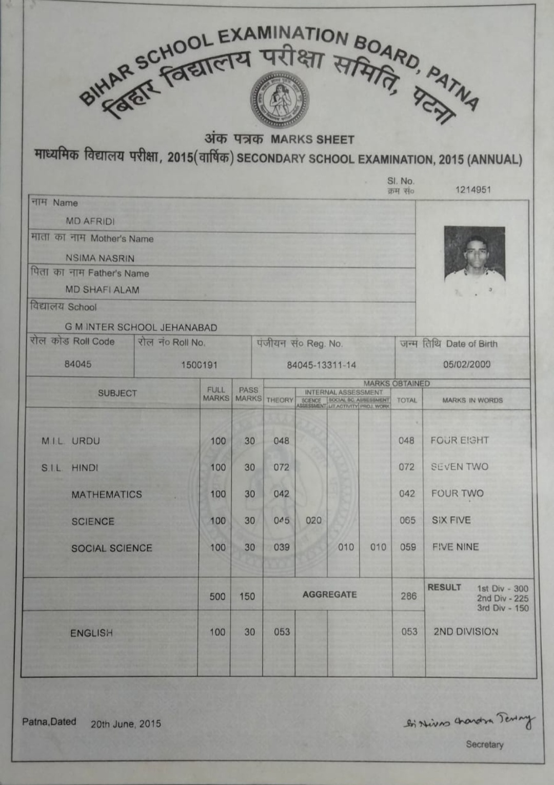 | : | Matric | |