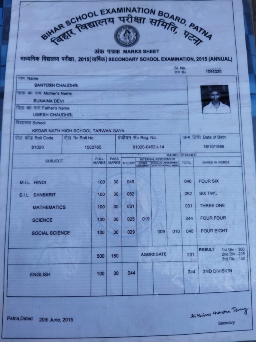 | Exam | Full Marks | Pass Marks | Marks Obtained |