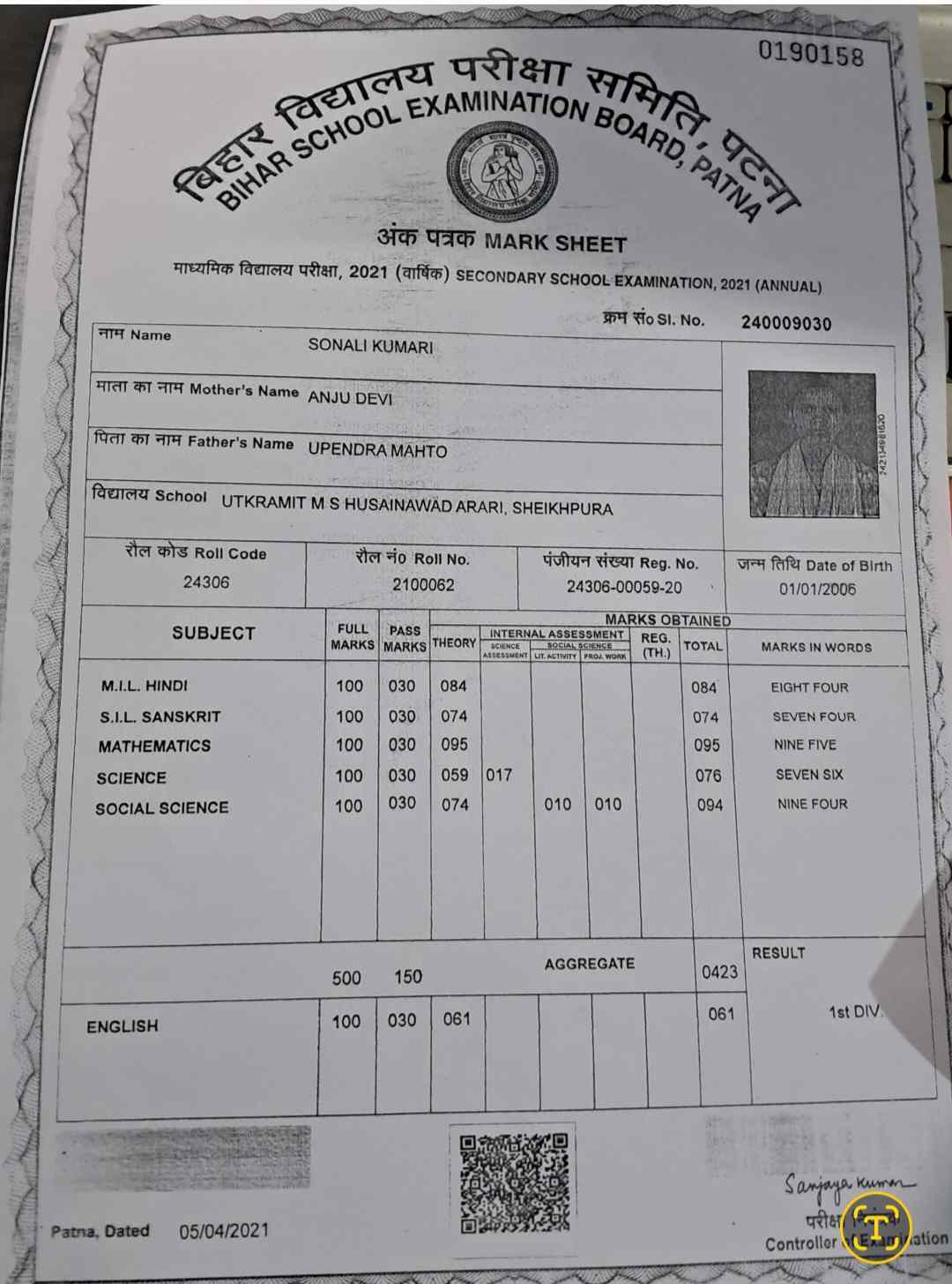 | Exam | Full Marks | Pass Marks | Marks Obtained |