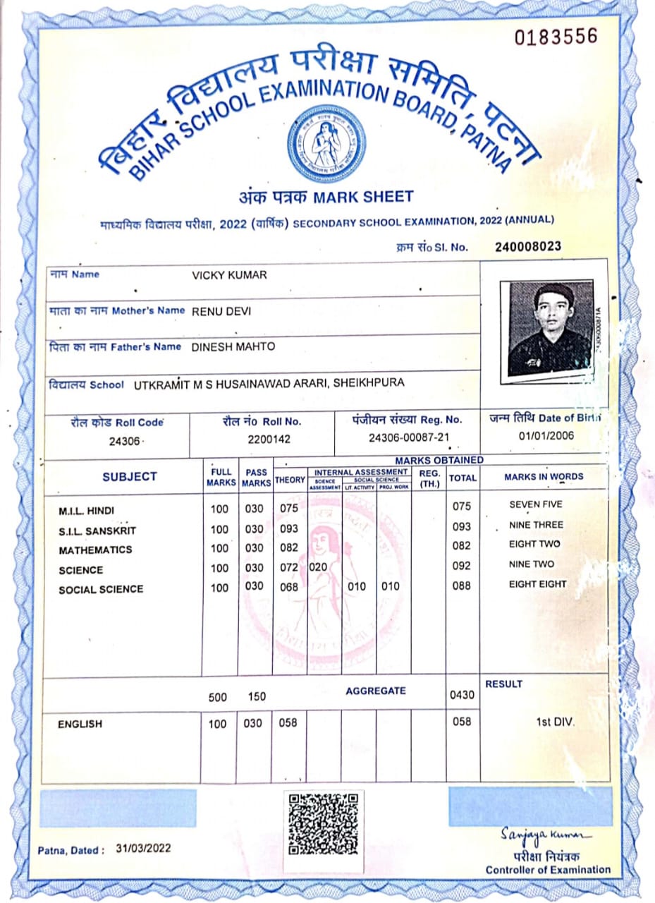 | Exam | Full Marks | Pass Marks | Marks Obtained |