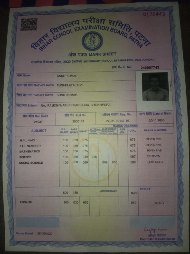 | Exam | Full Marks | Pass Marks | Marks Obtained |