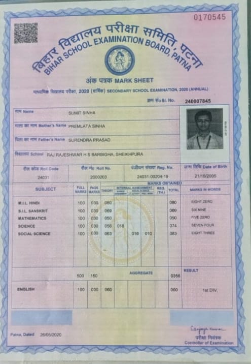 | Exam | Full Marks | Pass Marks | Marks Obtained |