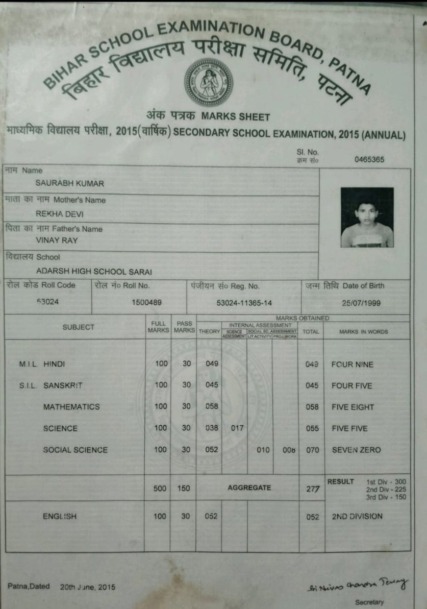 | Exam | Full Marks | Pass Marks | Marks Obtained |
