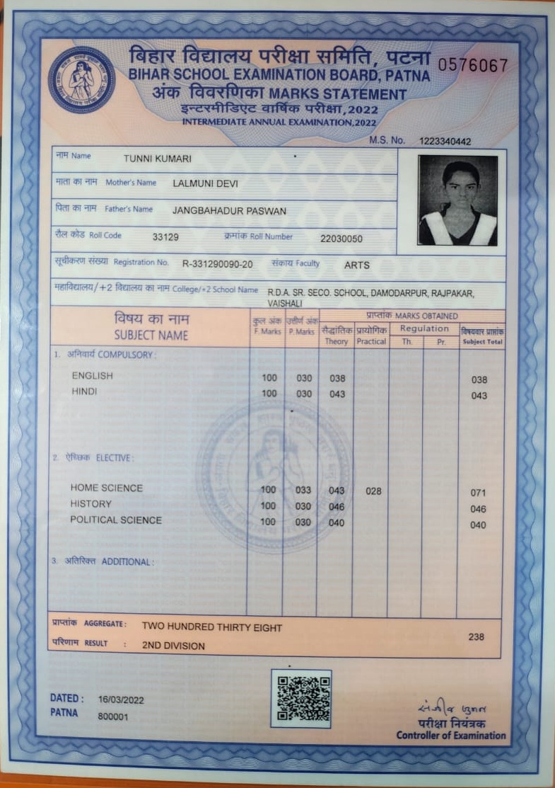 | Exam | Full Marks | Pass Marks | Marks Obtained |