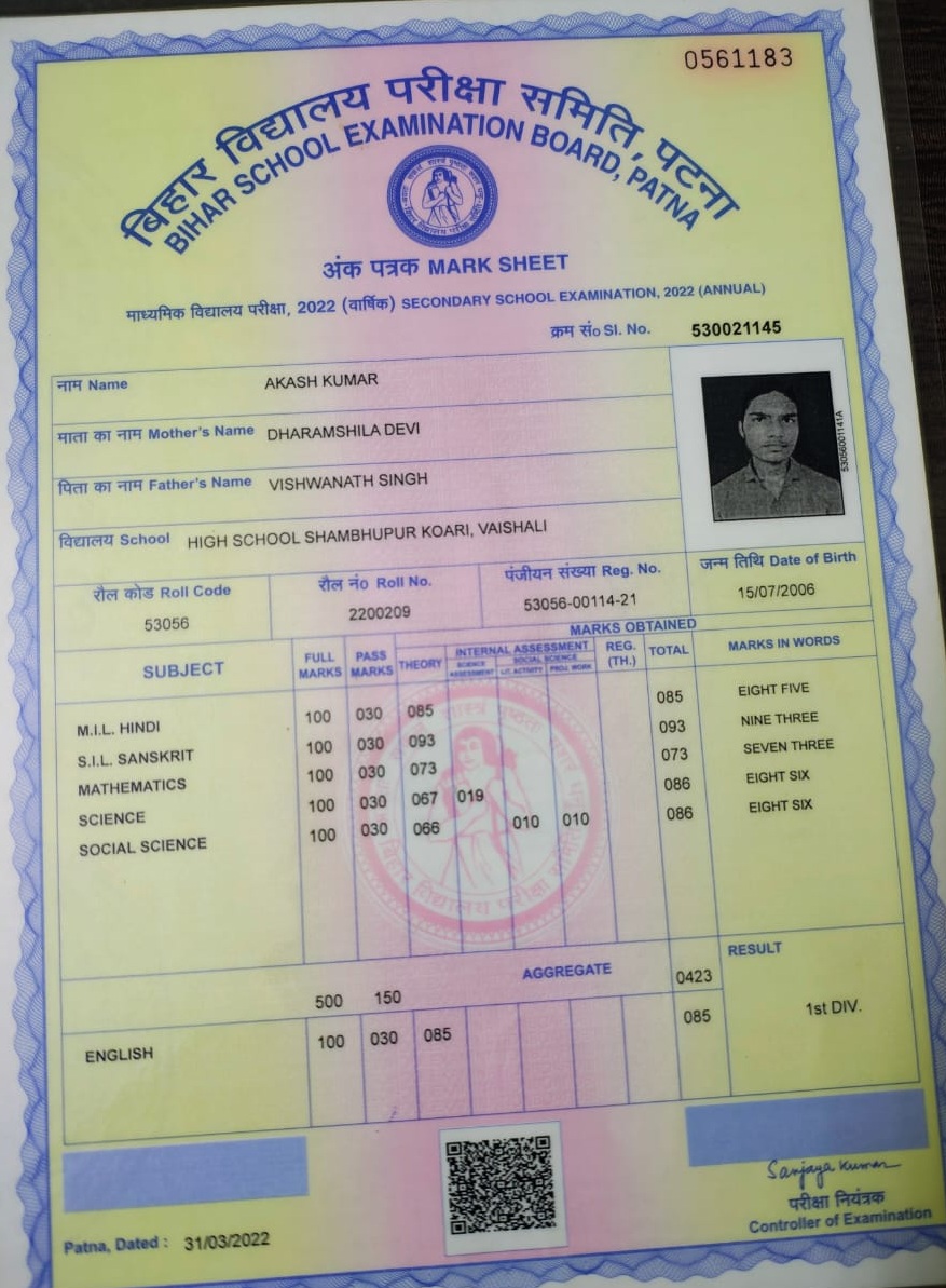 | Exam | Full Marks | Pass Marks | Marks Obtained |