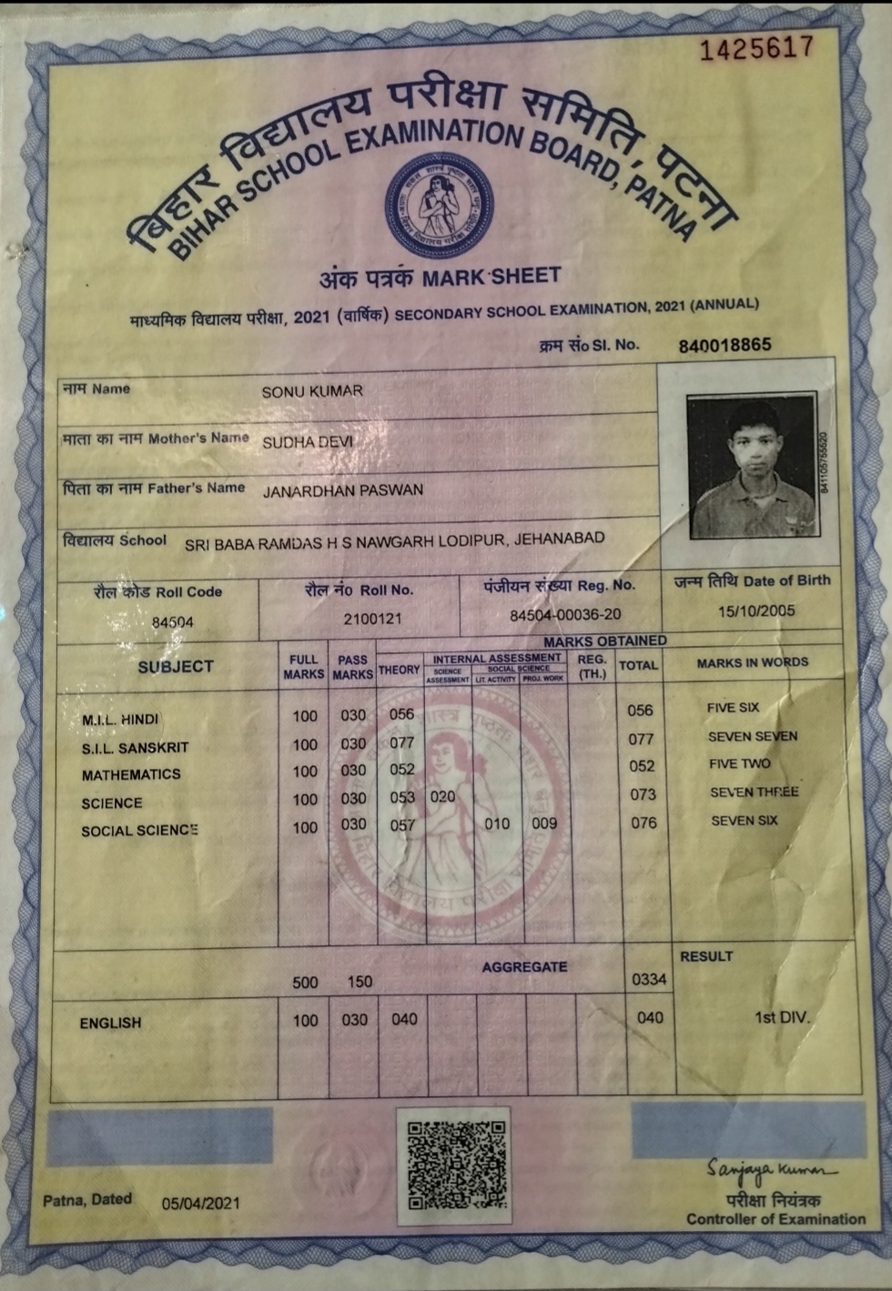 | Exam | Full Marks | Pass Marks | Marks Obtained |