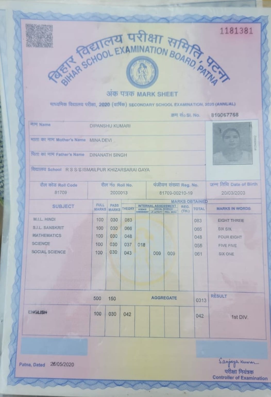 | Exam | Full Marks | Pass Marks | Marks Obtained |
