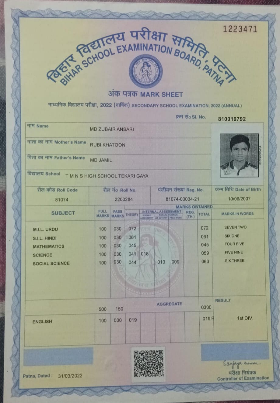 | Exam | Full Marks | Pass Marks | Marks Obtained |