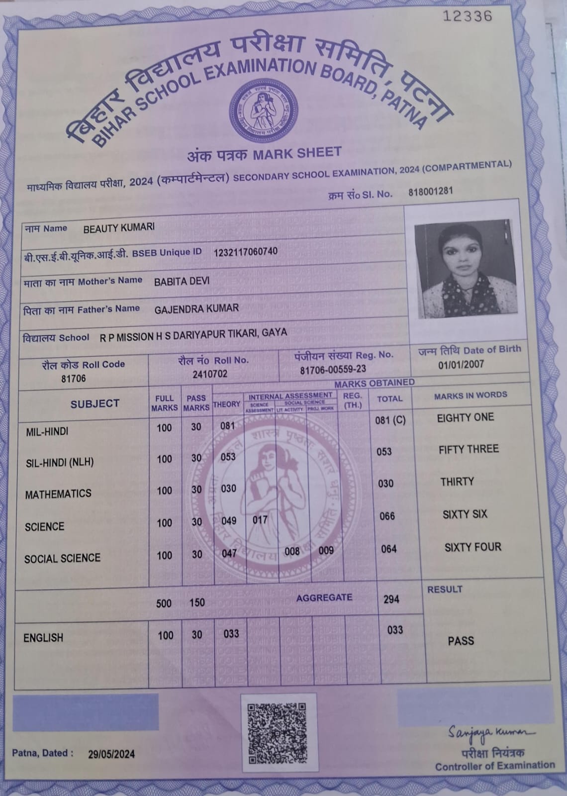 | Exam | Full Marks | Pass Marks | Marks Obtained |