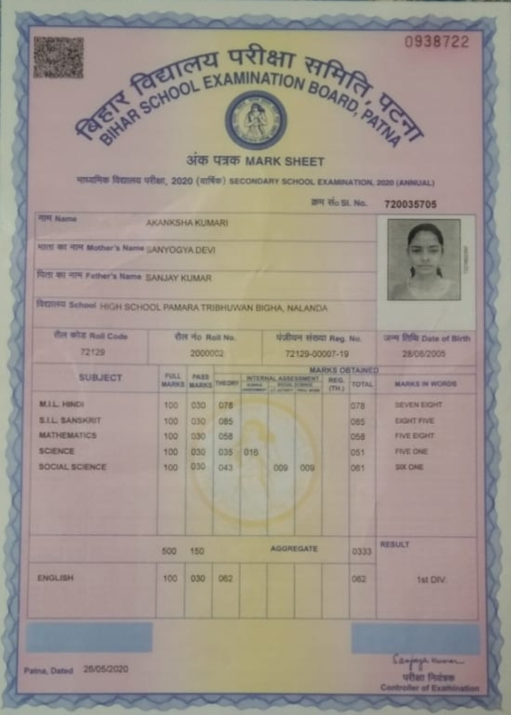 | Exam | Full Marks | Pass Marks | Marks Obtained |