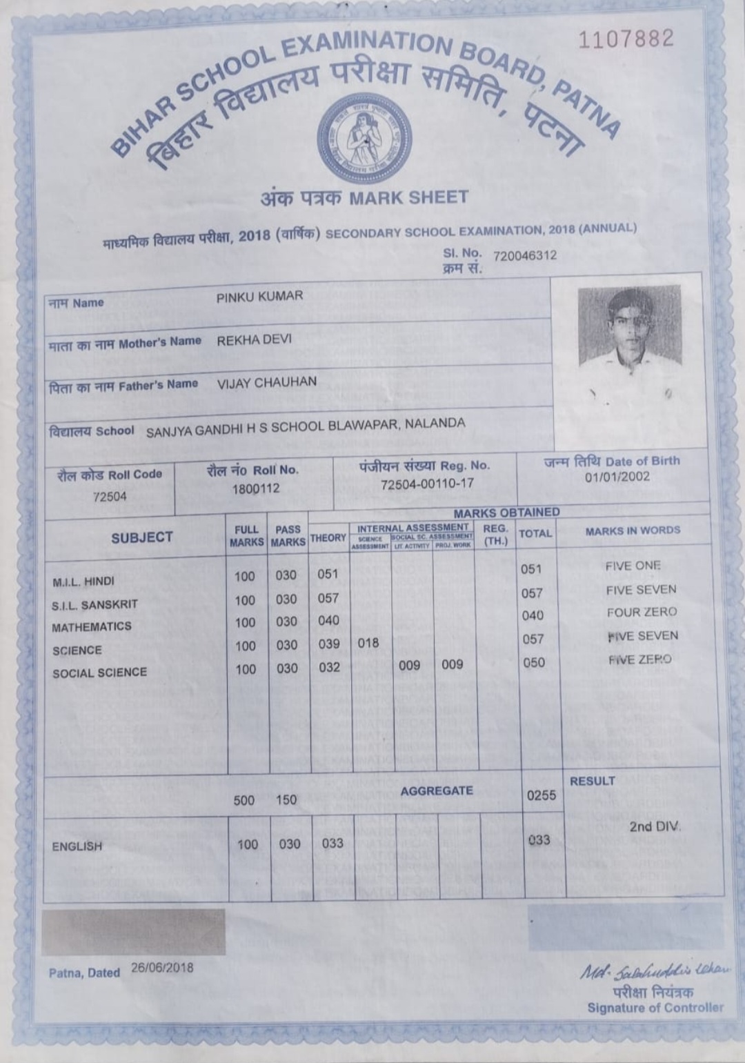 | Exam | Full Marks | Pass Marks | Marks Obtained |