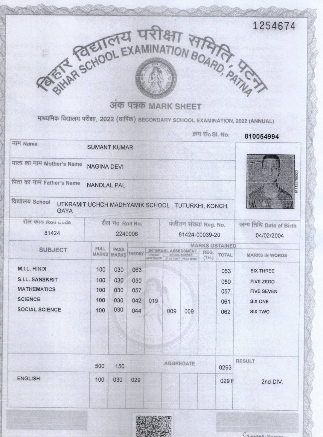 | Exam | Full Marks | Pass Marks | Marks Obtained |