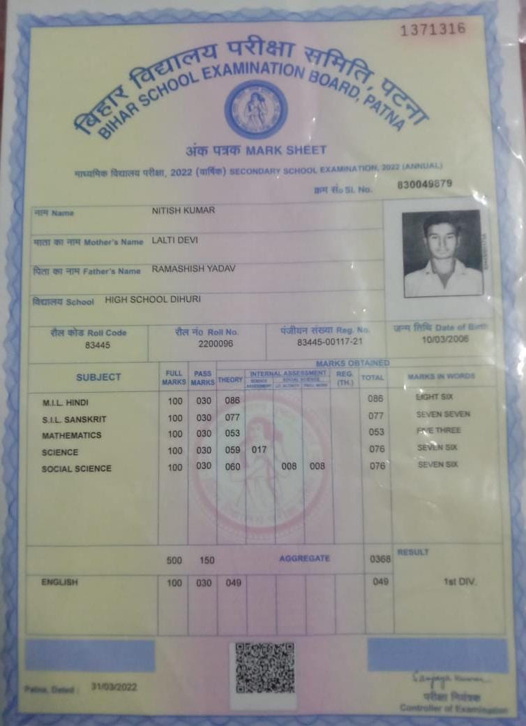 | Exam | Full Marks | Pass Marks | Marks Obtained |