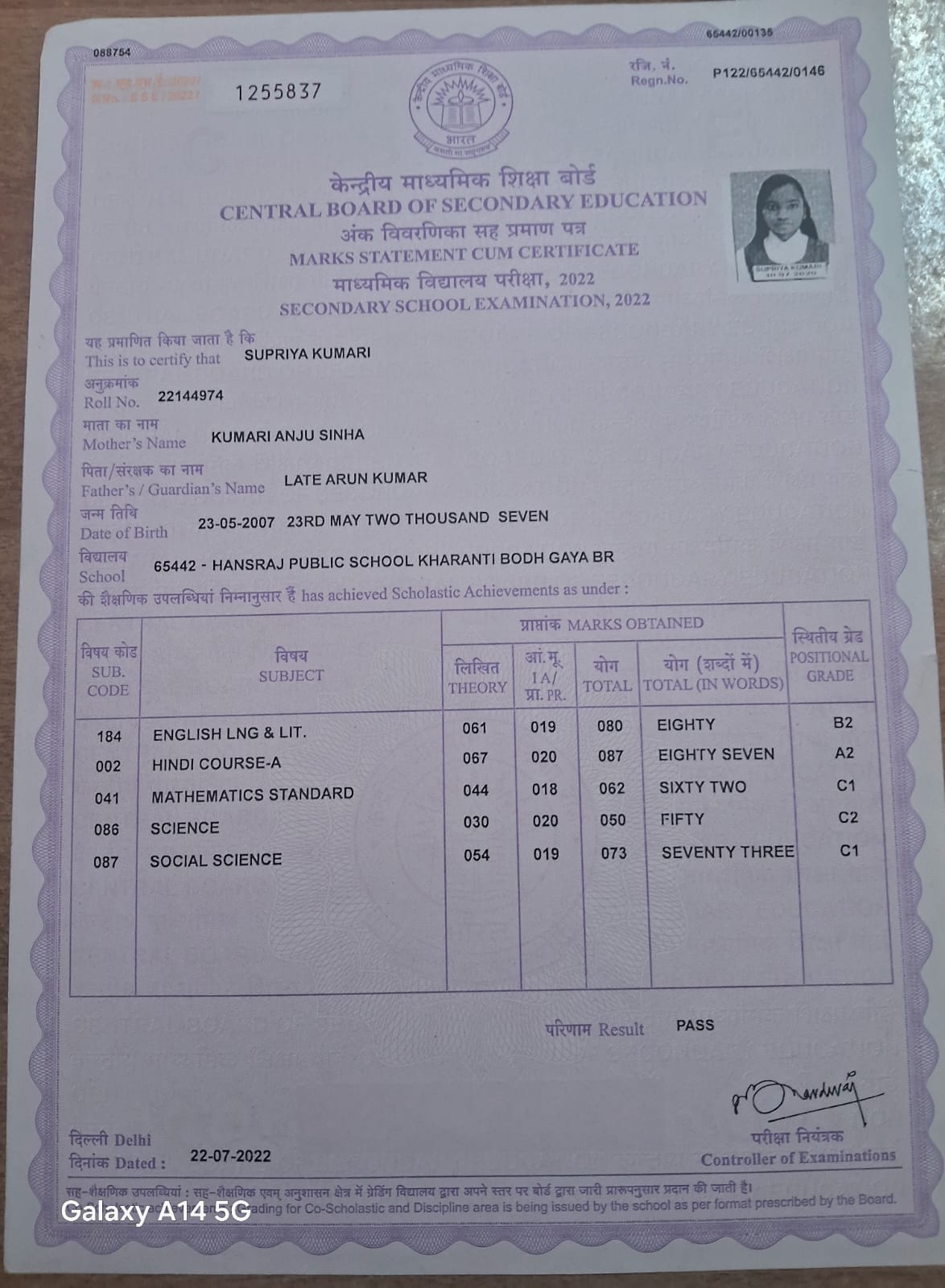 | Exam | Full Marks | Pass Marks | Marks Obtained |