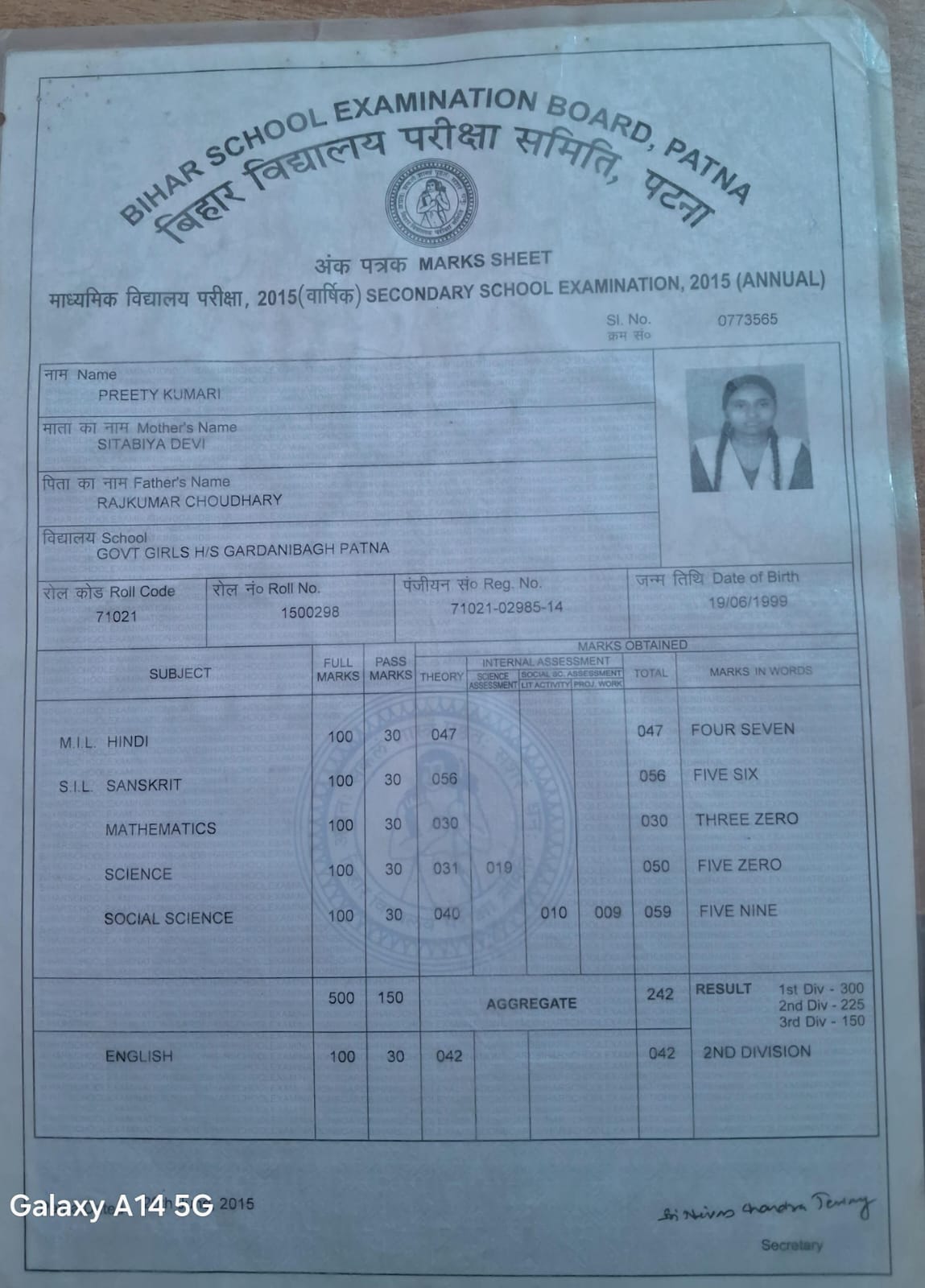 | Exam | Full Marks | Pass Marks | Marks Obtained |