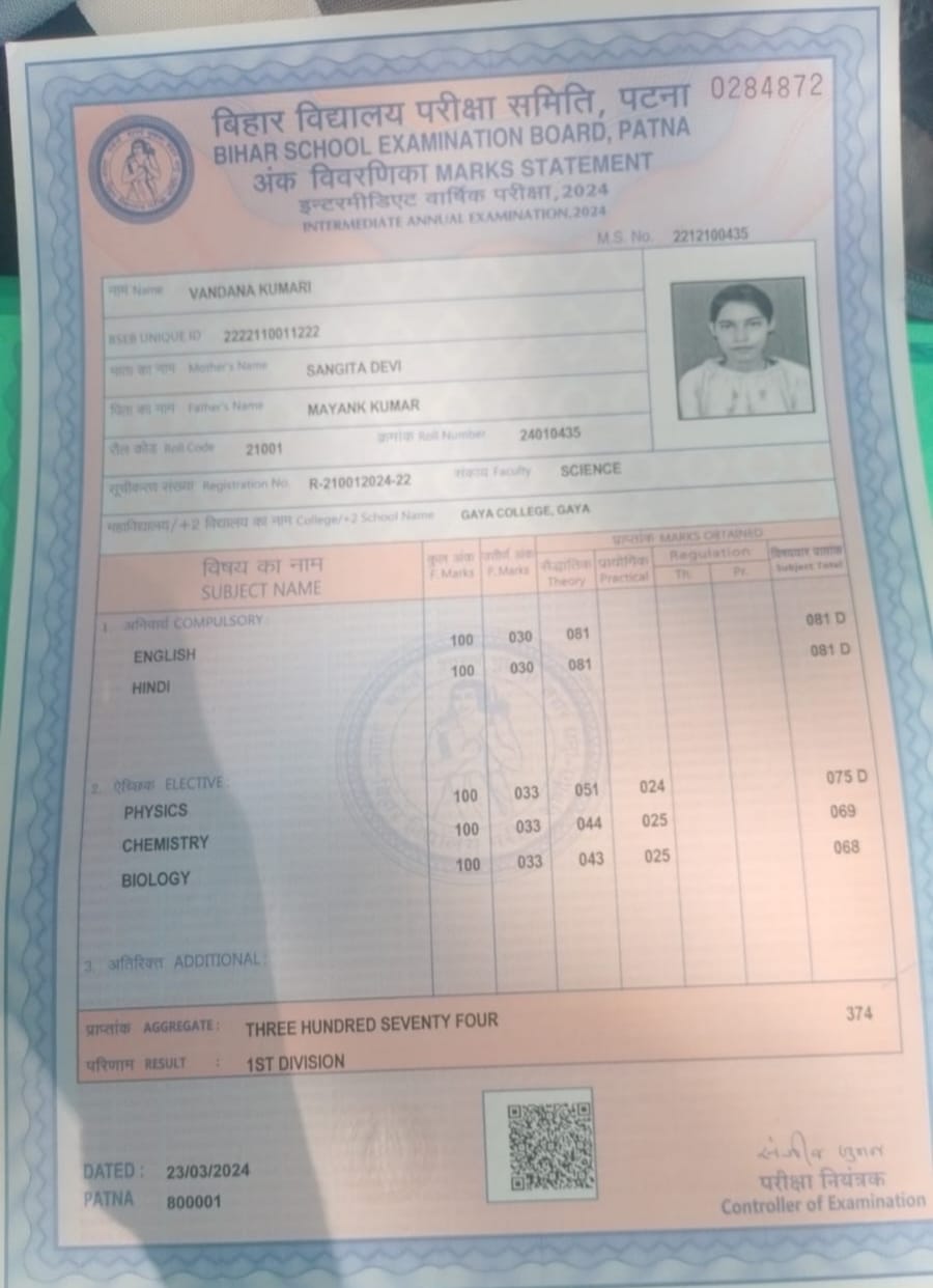 | Exam | Full Marks | Pass Marks | Marks Obtained |