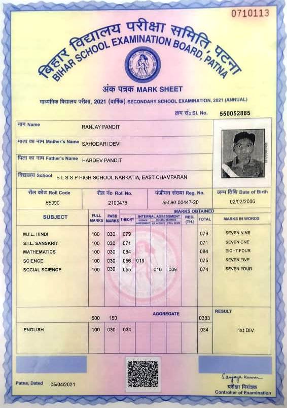 | Exam | Full Marks | Pass Marks | Marks Obtained |