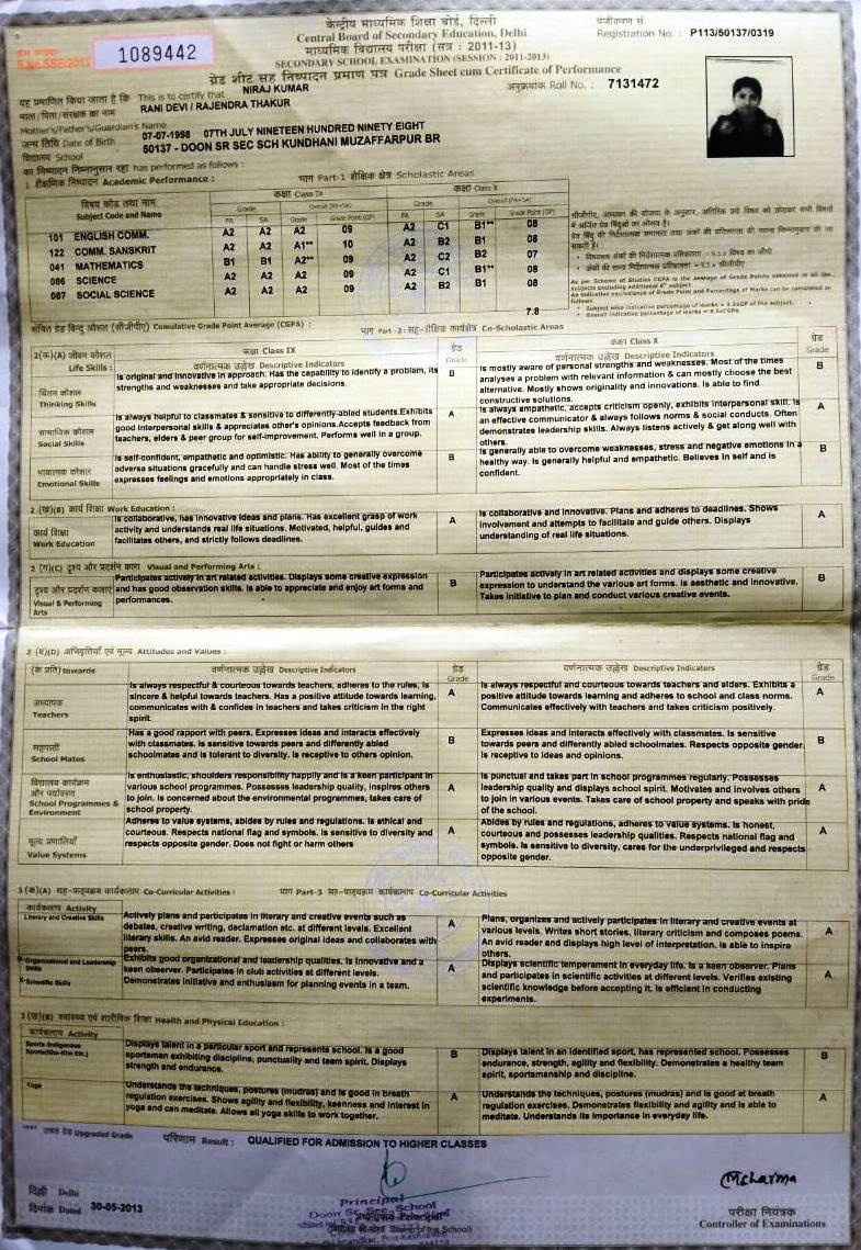 | Exam | Full Marks | Pass Marks | Marks Obtained |