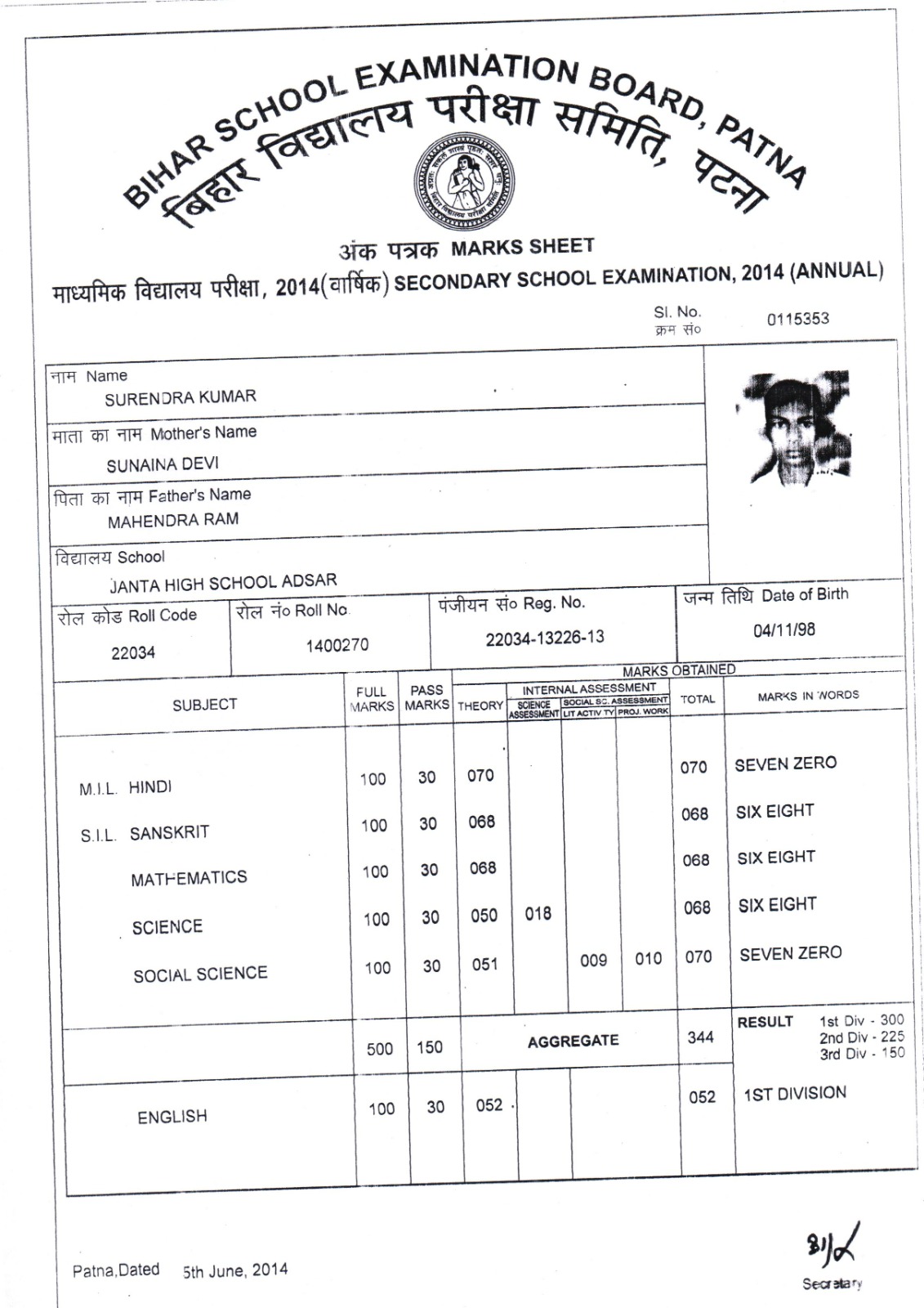 | : | AT-SIKANDRA PO-SIKANDRA DIST-JAMUI STATE-BIHAR PIN-811315, Jamui | |