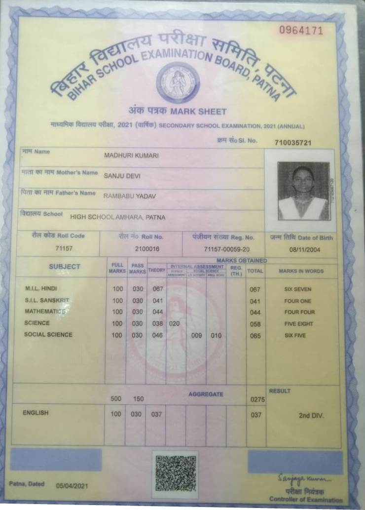 | Exam | Full Marks | Pass Marks | Marks Obtained |