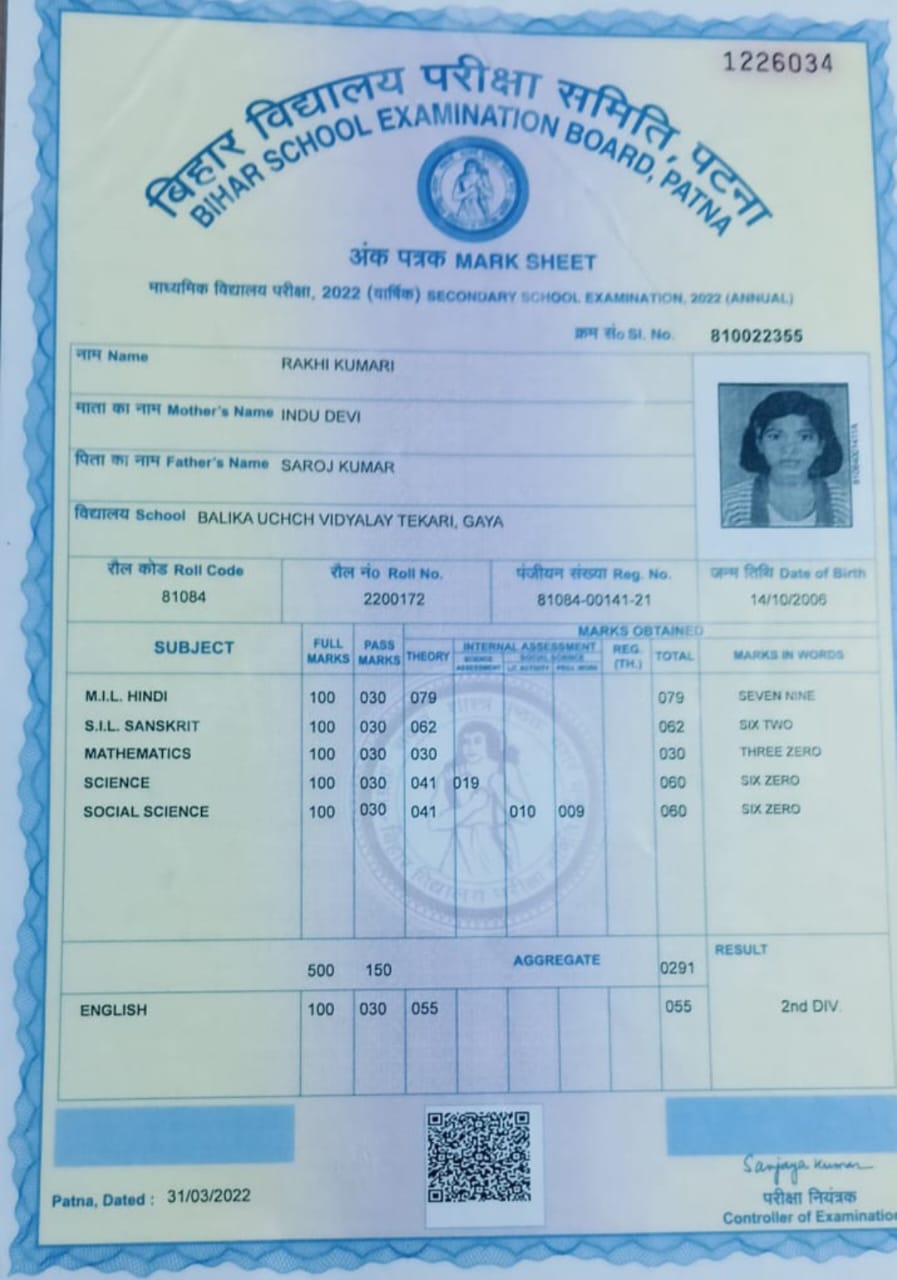 | Exam | Full Marks | Pass Marks | Marks Obtained |