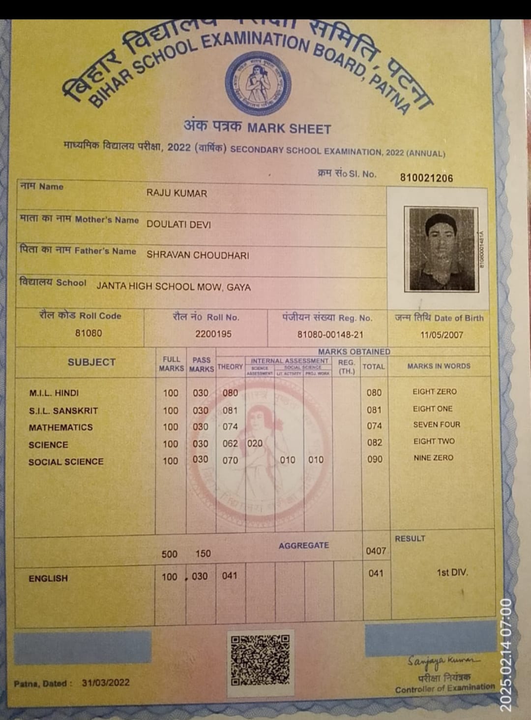 | Exam | Full Marks | Pass Marks | Marks Obtained |