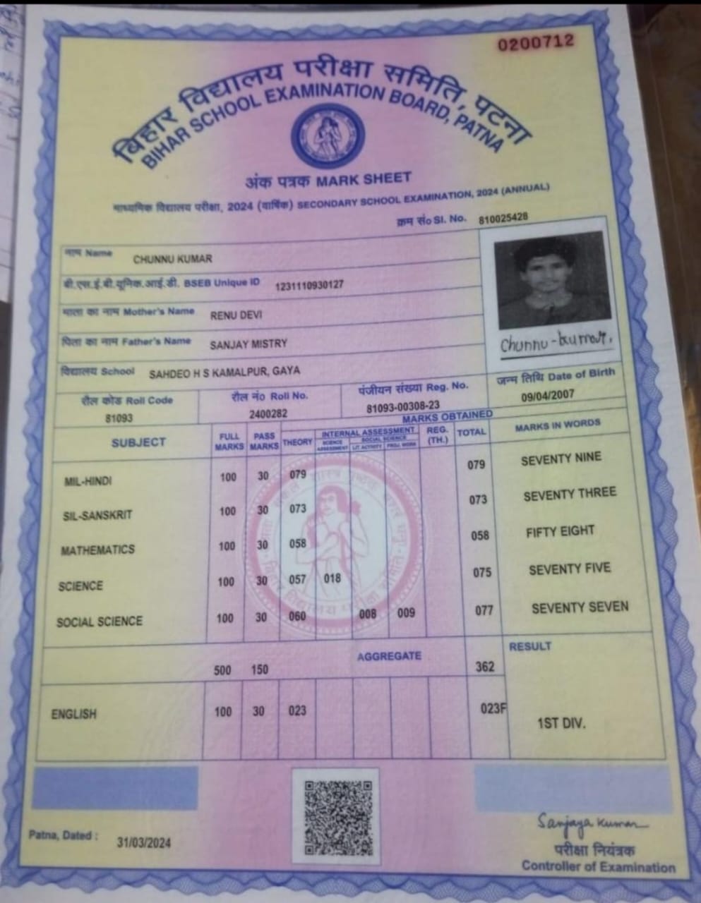 | Exam | Full Marks | Pass Marks | Marks Obtained |
