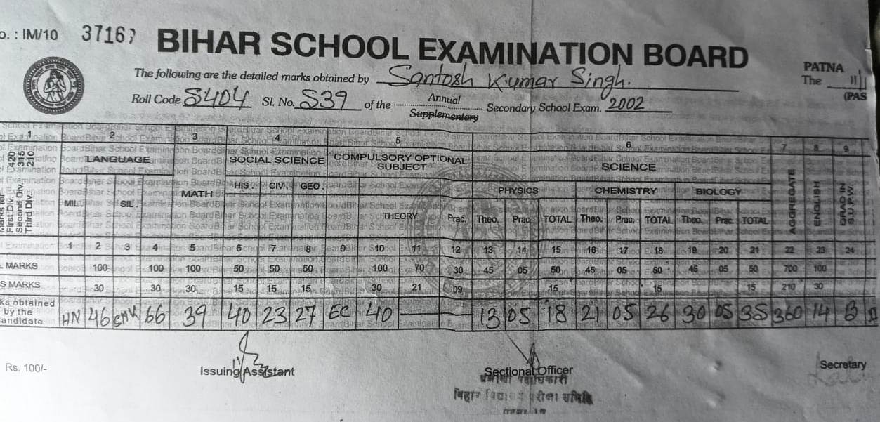 | Exam | Full Marks | Pass Marks | Marks Obtained |