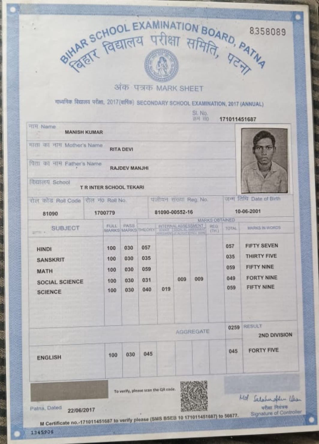 | : | Rajdev Manjhi | |