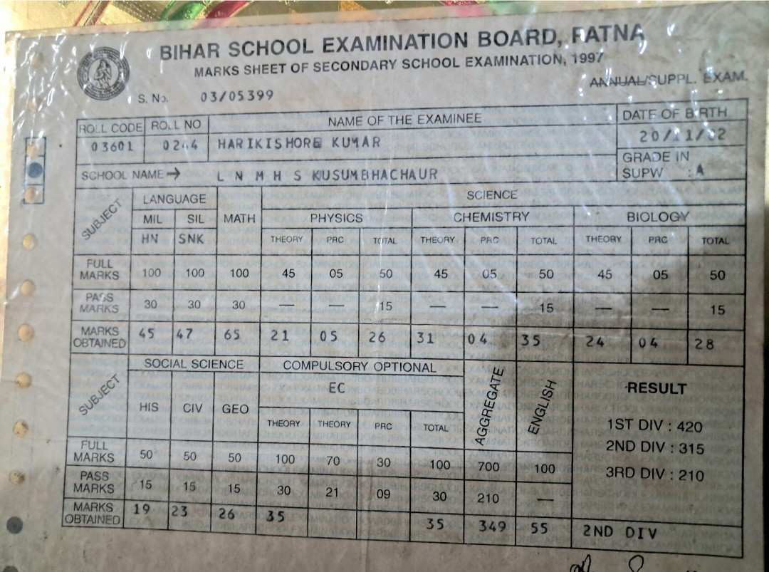| Exam | Full Marks | Pass Marks | Marks Obtained |