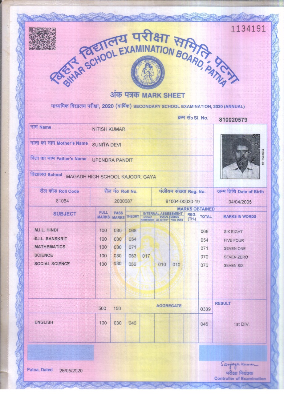 | Exam | Full Marks | Pass Marks | Marks Obtained |