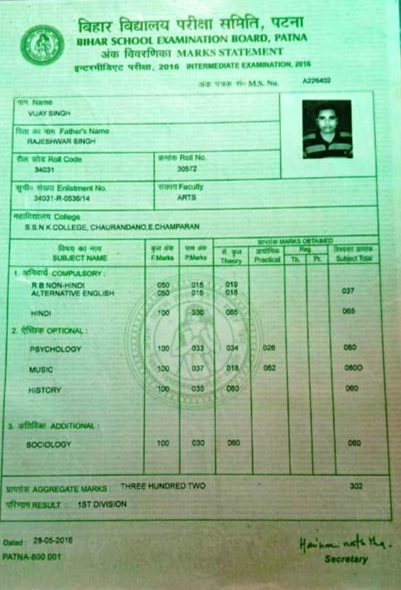 | Exam | Full Marks | Pass Marks | Marks Obtained |