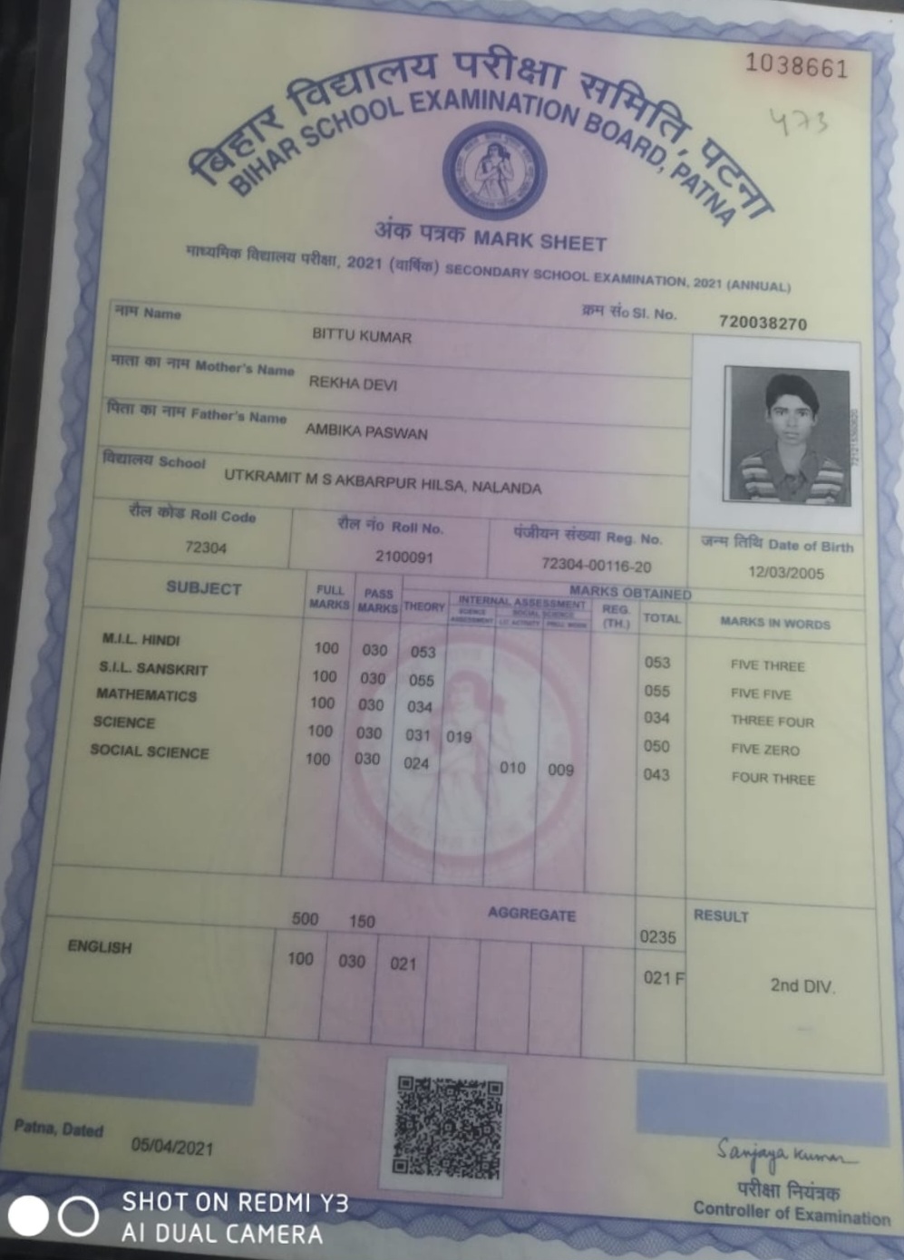| Exam | Full Marks | Pass Marks | Marks Obtained |