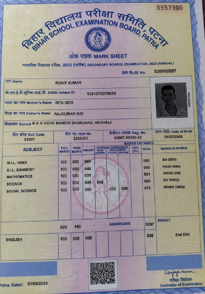 | Exam | Full Marks | Pass Marks | Marks Obtained |