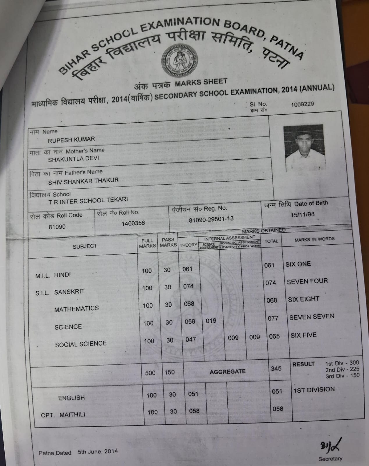 | Exam | Full Marks | Pass Marks | Marks Obtained |