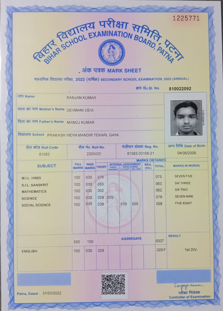 | Exam | Full Marks | Pass Marks | Marks Obtained |