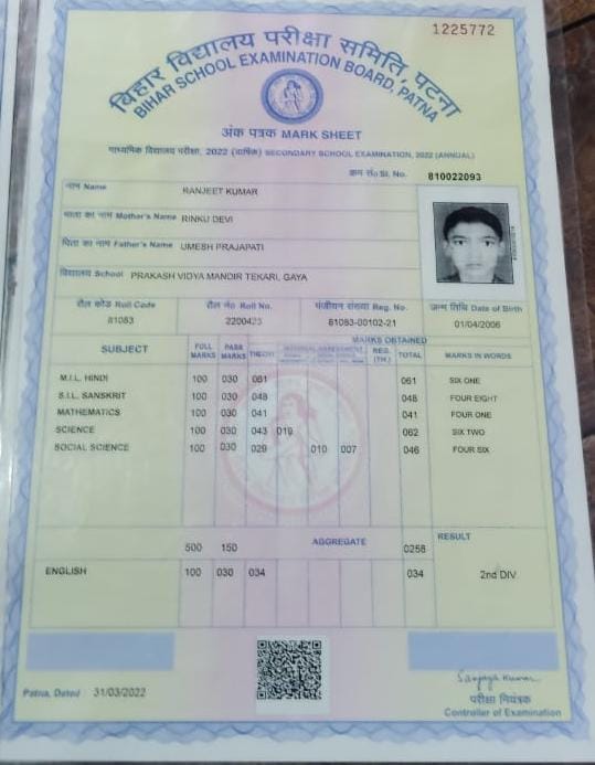 | Exam | Full Marks | Pass Marks | Marks Obtained |