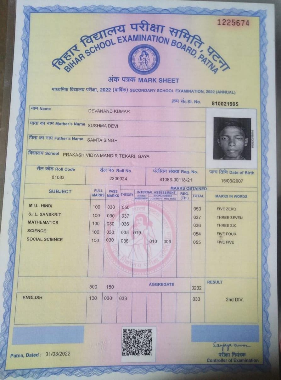 | Exam | Full Marks | Pass Marks | Marks Obtained |