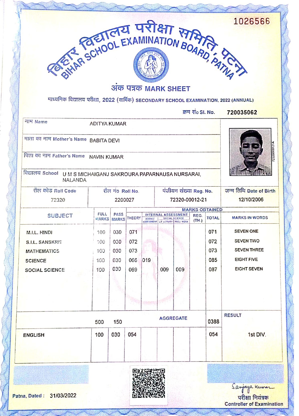 | Exam | Full Marks | Pass Marks | Marks Obtained |