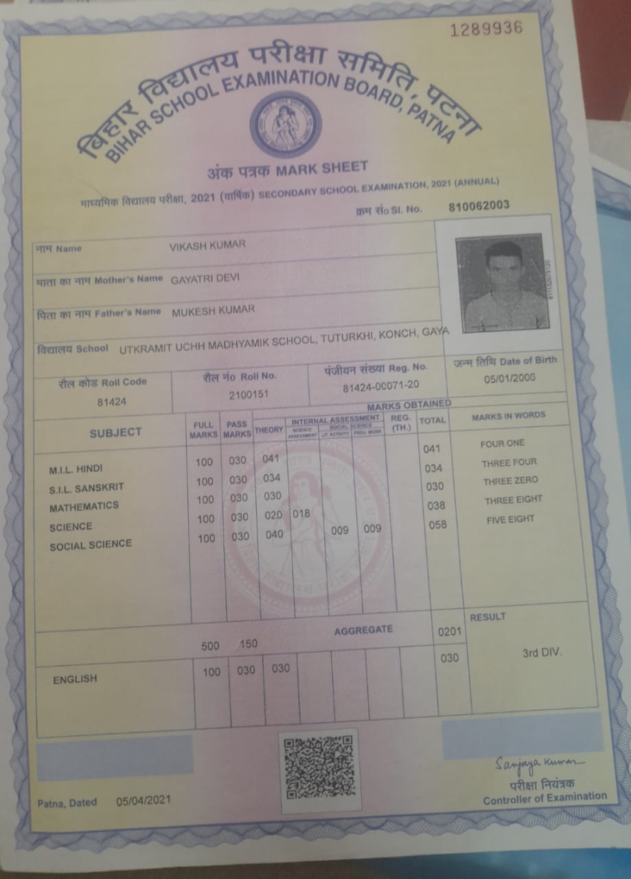 | Exam | Full Marks | Pass Marks | Marks Obtained |