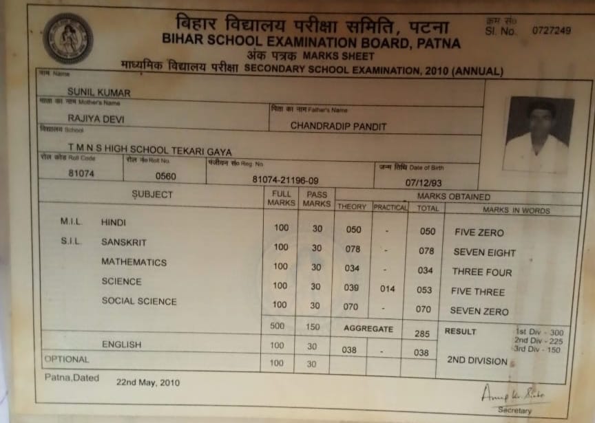 | Exam | Full Marks | Pass Marks | Marks Obtained |