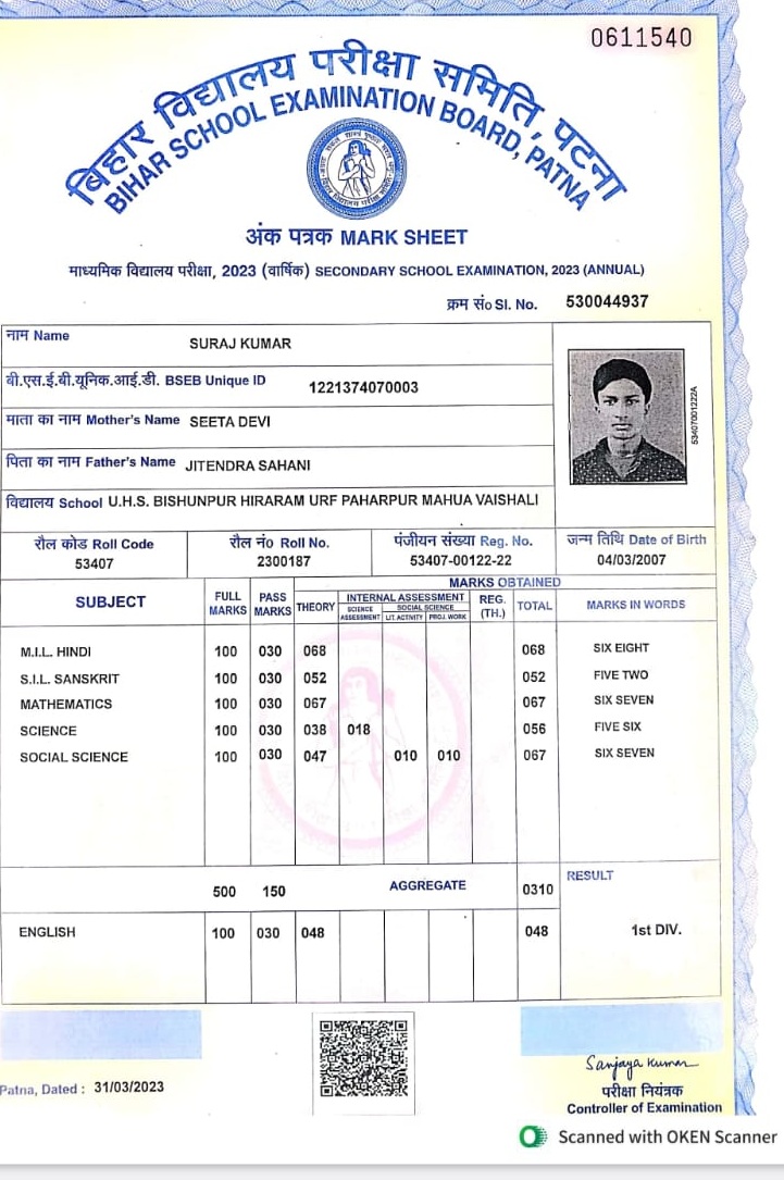 | Exam | Full Marks | Pass Marks | Marks Obtained |