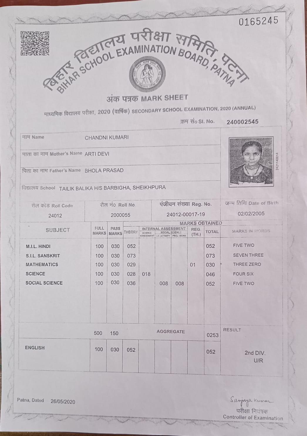 | Exam | Full Marks | Pass Marks | Marks Obtained |